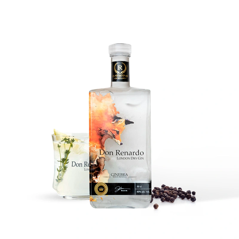 Duik in de geheimen van de Spaanse natuur met Brouwhoeve Don Renardo Gin. Deze ambachtelijke London Dry Gin is een ode aan de sluwe elegantie van de vos (renardo in het Spaans), die de gevarieerde landschappen van Spanje doorkruist. Hij wordt gedistilleerd met een zorgvuldig geselecteerde mix van 18 botanicals.